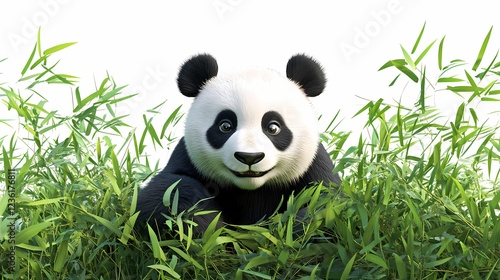 © parinja, Obraz premium Cute Panda Among Green Bamboo - Adorable Wildlife Scene