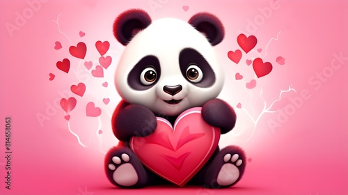© Ali, Obraz premium Cute panda. Background with selective focus and copy space