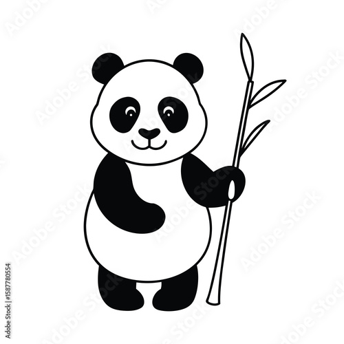 © misttahmina, Fototapeta premium cute panda bear holding bamboo illustration design