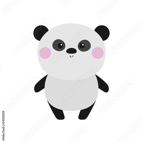 © worldofvector, Naklejka premium Cute panda bear icon. Kawaii cartoon character. Funny head face. Pink cheeks. Happy Valentines Day. Baby greeting card template. Notebook cover, tshirt. White background. Flat design.
