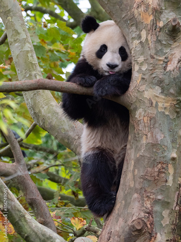 Obraz premium Cute panda bear on a tree in the zoo. France