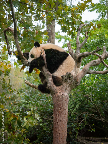 © Wirestock, Obraz premium Cute panda bear resting on a green tree. France