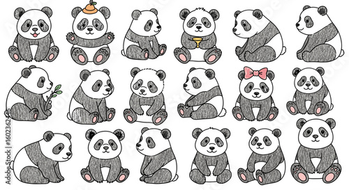 Obraz premium Cute panda bears sitting in different poses. Cartoon animals, illustration,...