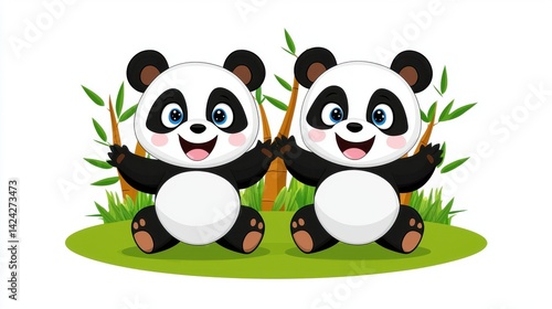 Obraz premium Cute Panda Cartoon with Bamboo Background