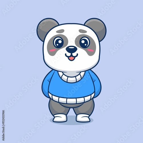 © Widatul, Fototapeta premium Cute panda creative kawaii wearing jacket cartoon vector icon