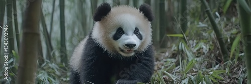 Obraz premium Cute Panda Cub in Bamboo Forest