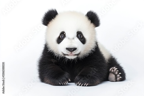 © Dzikrul Husnani, Fototapeta premium Cute Panda Cub Resting on White Background with Fluffy Black Fur