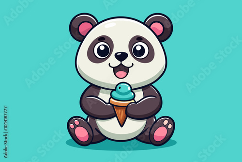 Naklejka premium Cute panda eating ice cream vector art illustration