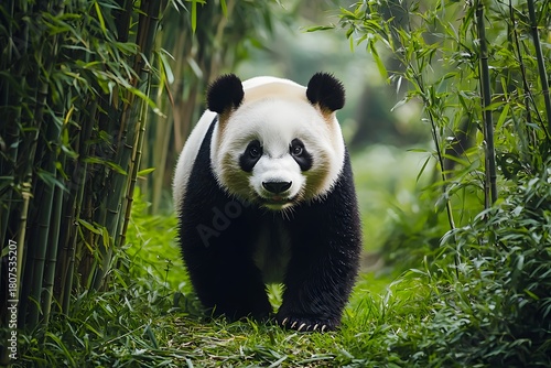 Fototapeta premium Cute panda exploring green habitat high resolution picture