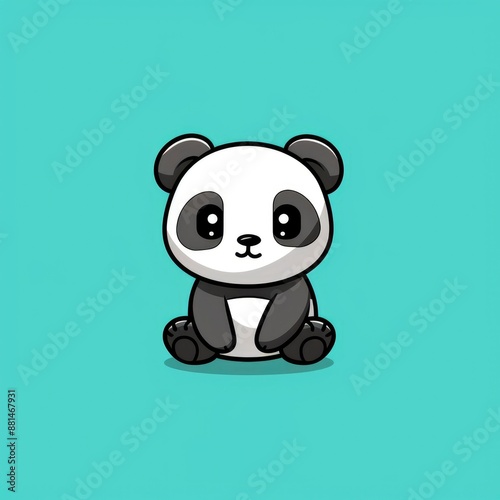 © Tungbackground, Naklejka premium cute panda logo, simple flat, design with white and black fur, bamboo shape against a green background, minimalist, color blocks
