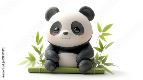 © Alienmarsh, Naklejka premium Cute Panda Sitting on Bamboo