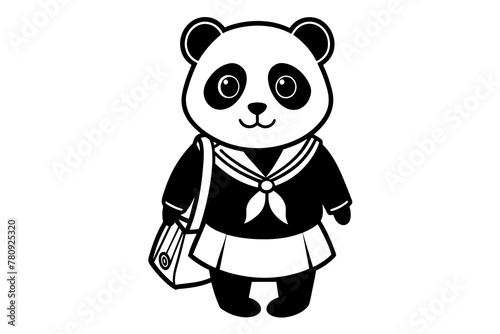 Fototapeta premium Cute panda t in School Uniform with Bag