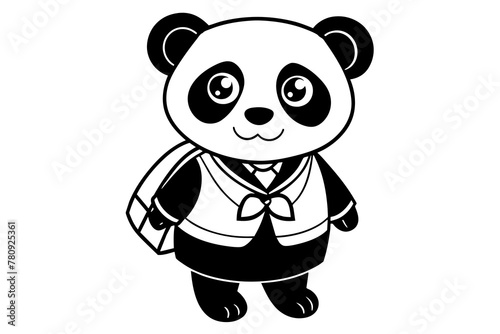 © AL, Naklejka premium Cute panda t in School Uniform with Bag