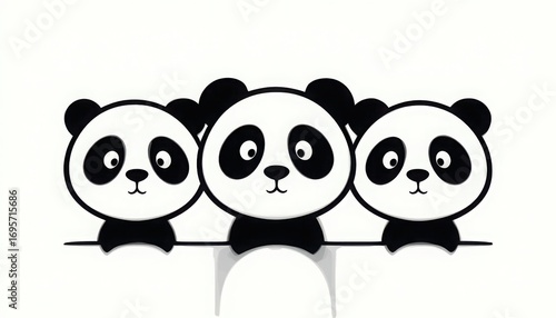 © Rizal Tahang, Naklejka premium Cute Panda Trio Black and White Graphic Illustration on White Background