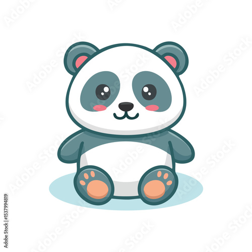 © Fajar, Fototapeta premium Cute Panda Vector with Bold Outline and Happy Face in Minimal Flat Style