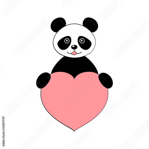 Fototapeta premium Cute panda with a heart. Postcard for Valentine's Day. Element for the design of prints, posters, stickers, postcards. Vector illustration on white background