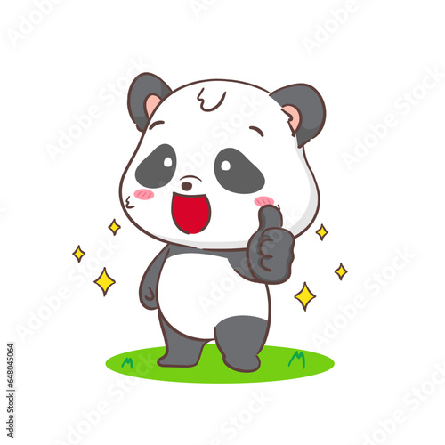 Naklejka premium Cute panda with thumb up cartoon character. Kawaii adorable animal concept...