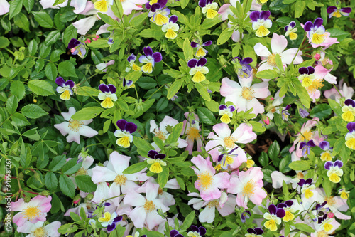 Naklejka premium Cute Pansies and Pink and White Flowers