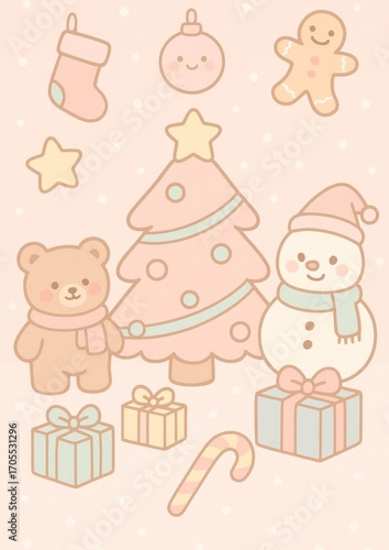 © Rawpixel.com, Fototapeta premium Cute pastel Christmas mobile wallpaper