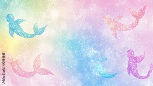 © hanisah, Fototapeta premium Cute pastel colorful glitter background for birthday party invitation. Little princess rainbow.