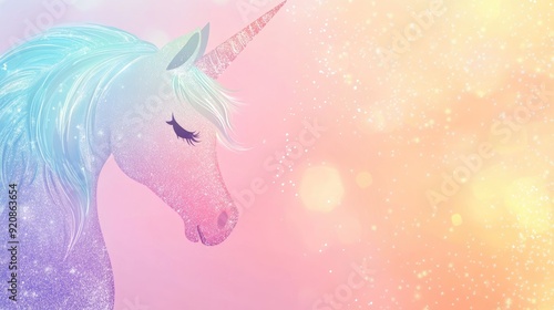 © hanisah, Fototapeta premium Cute pastel colorful glitter background for birthday party invitation. Little princess rainbow.