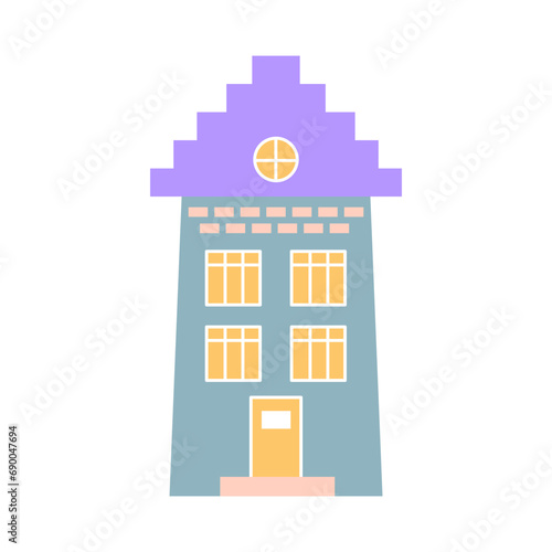 Fototapeta premium Cute pastel scandinavian house. Dutch canal home. Traditional architecture of Netherlands, Belgium and Amsterdam. Hand drawn vector illustration isolated on white background.