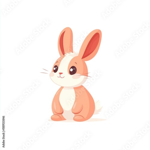 © lestari, Obraz premium Cute peach bunny sitting, white background, illustration, children's book