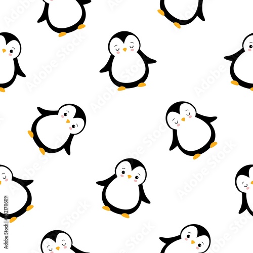 Fototapeta premium Cute penguin babies. Vector cartoon seamless pattern on white background