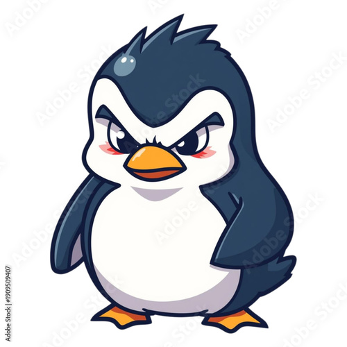 © Khiesni, Obraz premium Cute Penguin Character Feeling Angry Flat Vector Illustration