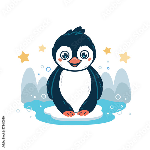 © Hanna Symonovych, Naklejka premium Cute penguin character, vector hand drawn art