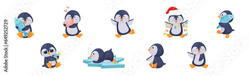 Fototapeta premium Cute Penguin Character with Happy Face Vector Set