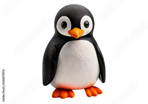 © Hanoi .s, Fototapeta premium Cute penguin figurine with a black and white body, round shape, and orange beak and feet. isolated on transparent or white background