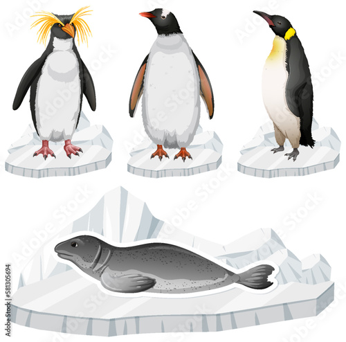 © blueringmedia, Obraz premium Cute Penguin Icons Set