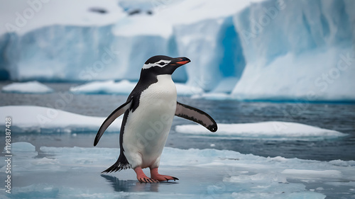 Naklejka premium cute penguin in Antarctica, created by generative ai