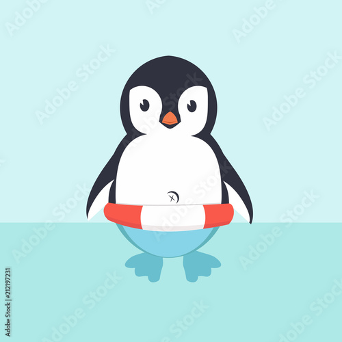 Obraz premium Cute Penguin in inflatable ring cartoon