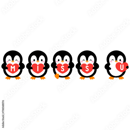 Fototapeta premium cute 5 penguin is holding a miss u sign