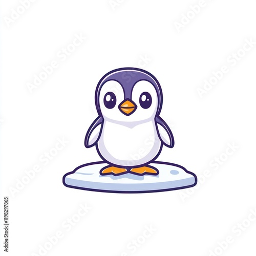 © lestari, Obraz premium Cute penguin standing on a small ice floe, on white backdrop, for children's book