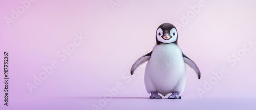 © KP, Fototapeta premium Cute Penguin Standing on Pink Background.