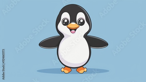 Fototapeta premium Cute penguin standing with wings out clipart, simple cartoon 2D, flat art