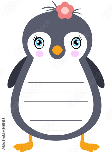 © soniagoncalves, Obraz premium Cute penguin sticker notebook and school label