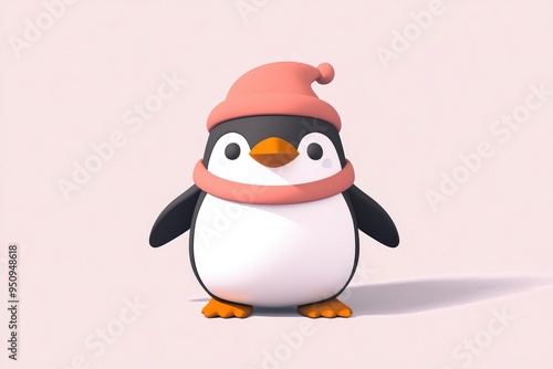 © Tung's companion, Obraz premium Cute Penguin Wearing a Winter Hat and Scarf