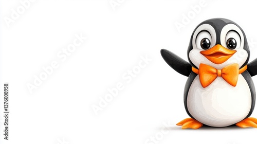 © Natthawadee, Fototapeta premium Cute Penguin with Bow Tie on White Background