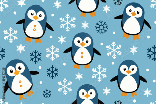 © Artistry, Fototapeta premium Cute penguins and snowflakes pattern