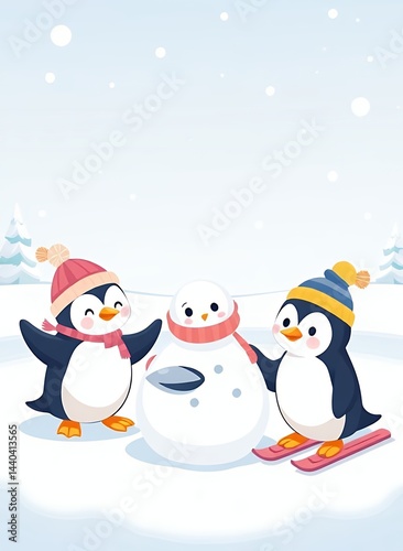 Fototapeta premium Cute Penguins in Winter Scene