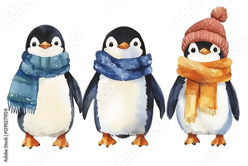 © Jangan, Naklejka premium Cute penguins in winter wear