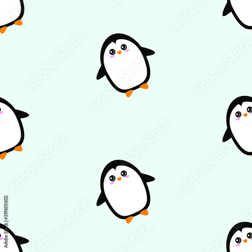 © selim, Obraz premium Cute penguins on blue background. Seamless pattern.