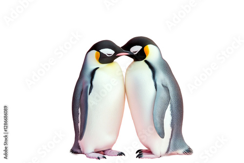 © MiraCle72, Obraz premium Cute penguins share a romantic moment against a transparent background in an enchanting portrayal of love and affection