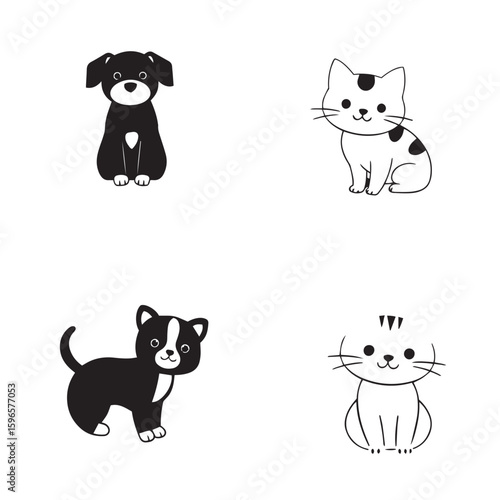 © Rayhan ID: #6344020, Obraz premium Cute pet dog and cat icon pack vector design concept black and white illustration.