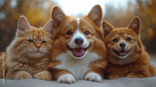 Obraz premium Cute pets on a plain white backdrop
