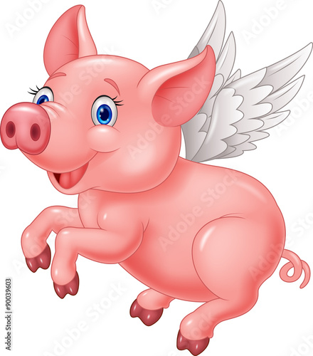Fototapeta premium Cute pig cartoon flying on white background